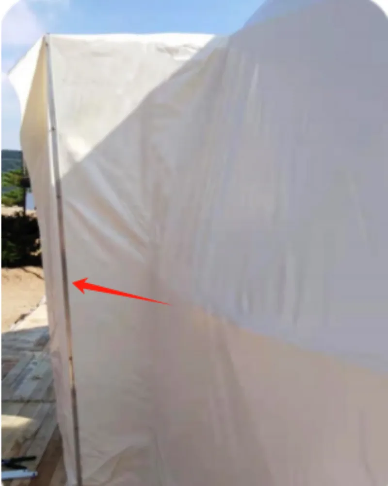 1. Unfolding and Positioning: Unfold the PVC membrane and align the entrance area of the membrane with the entrance of the frame. Use ropes to secure the top of the PVC membrane, winding it from top to bottom for even coverage.